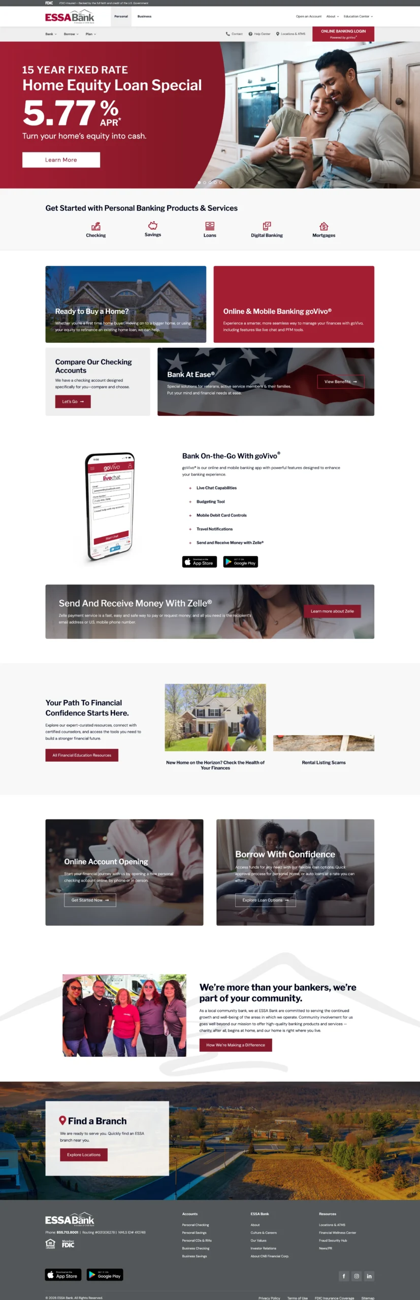 ESSA Bank is a community-focused financial institution serving individuals, families, and businesses across Pennsylvania. With a strong emphasis on trust, accessibility, and local relationships, their digital presence needed to reflect the same clarity and reliability found in their in-branch experience.